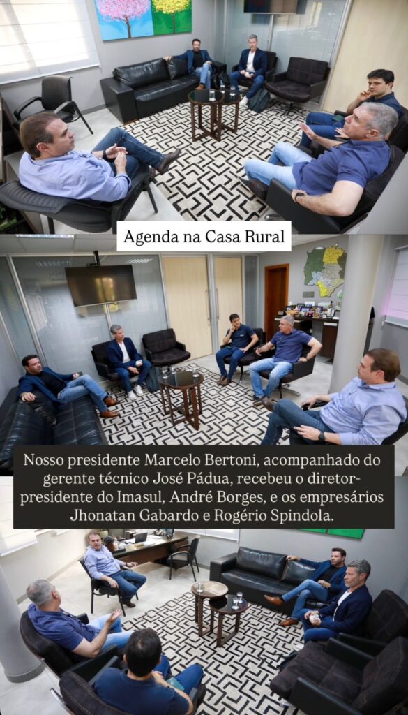 Durante a reunião com o presidente Marcelo Bertoni, foram discutidas alternativas para auxiliar os produtores a se adequarem às normas ambientais e de segurança, especialmente no que se refere ao armazenamento de defensivos agrícolas.