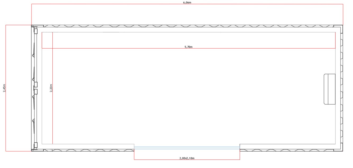 Medidas Externas (Aproximadas):Comprimento: 6,06 mLargura: 2,44 mAltura: 2,59 m